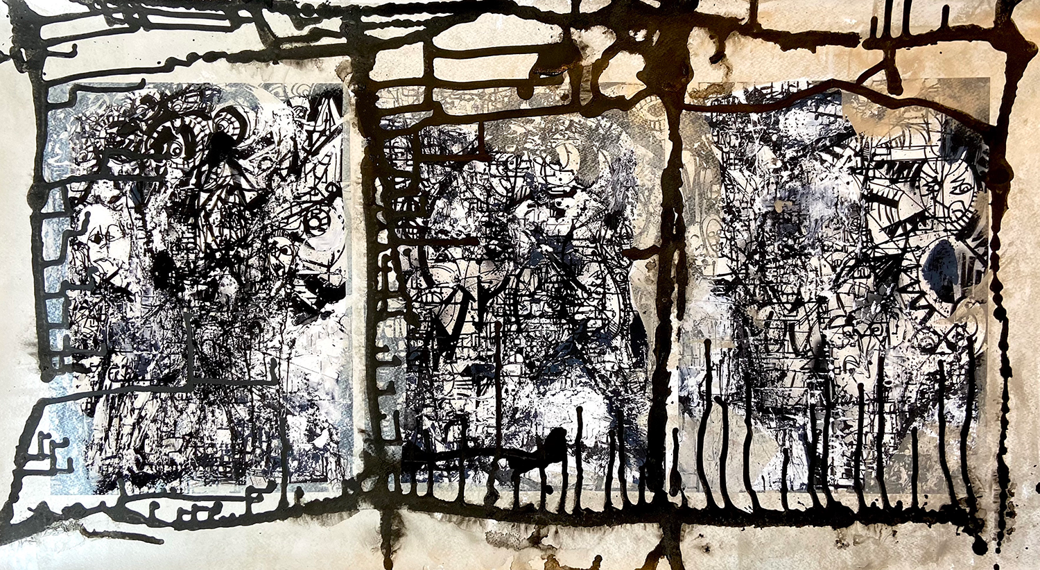 Archival pigment on cold press 340gsm paper with poured paint and plaster effects